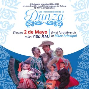 Te invitamos cordialmente a disfrutar de una presentación llena de ritmo, color y tradición, este 2 de mayo a las 7:00 p.m. en el foro libre de la plaza principal.