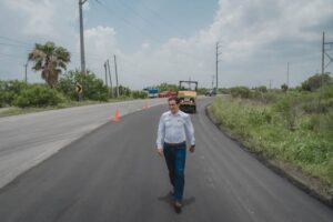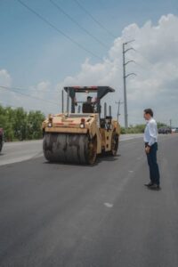 El Presidente Municipal, Dr. Alberto Alanis Villarreal implementa trabajos de reencarpetado en la carretera Valle Hermoso – Empalme a la altura del Km 73 con Brecha 122, segunda curva rumbo al Poblado Empalme para así mejorar la vialidad, evitando accidentes.