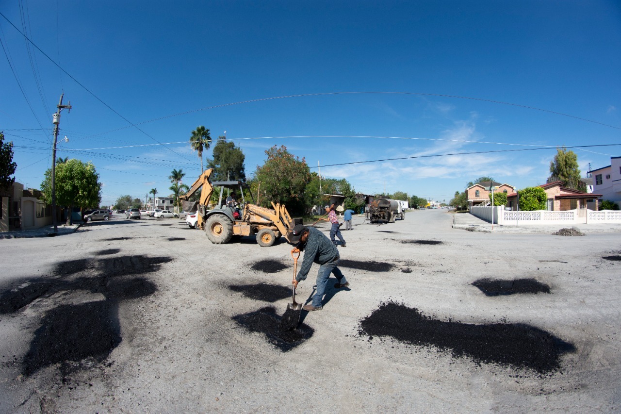 Cuadrillas de la dependencia municipal, laboran a lo largo de la calle quinta, de norte a sur, beneficiando a los habitantes de la zona centro que transitan por esta arteria vial, cumpliendo así, el compromiso del edil municipal, por restablecer las calles de Valle Hermoso.