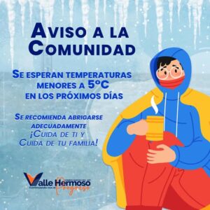 Se le informa a la población que en los próximos días se presentará el ingreso de un frente frío en el municipio, el cual ocasionará descenso de temperaturas, ráfagas de viento y posibles lluvias.