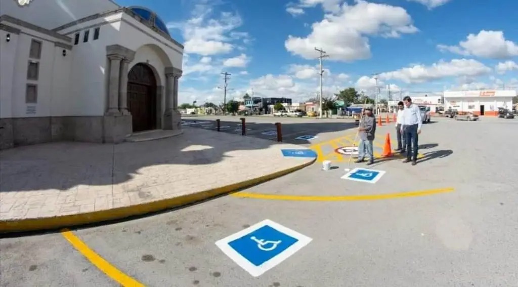 Por ello las cuadrillas del Municipio intensificaron los trabajos de pintado de espacios de personas con discapacidad en los espacios públicos comerciales, religiosos y oficiales de gobierno.